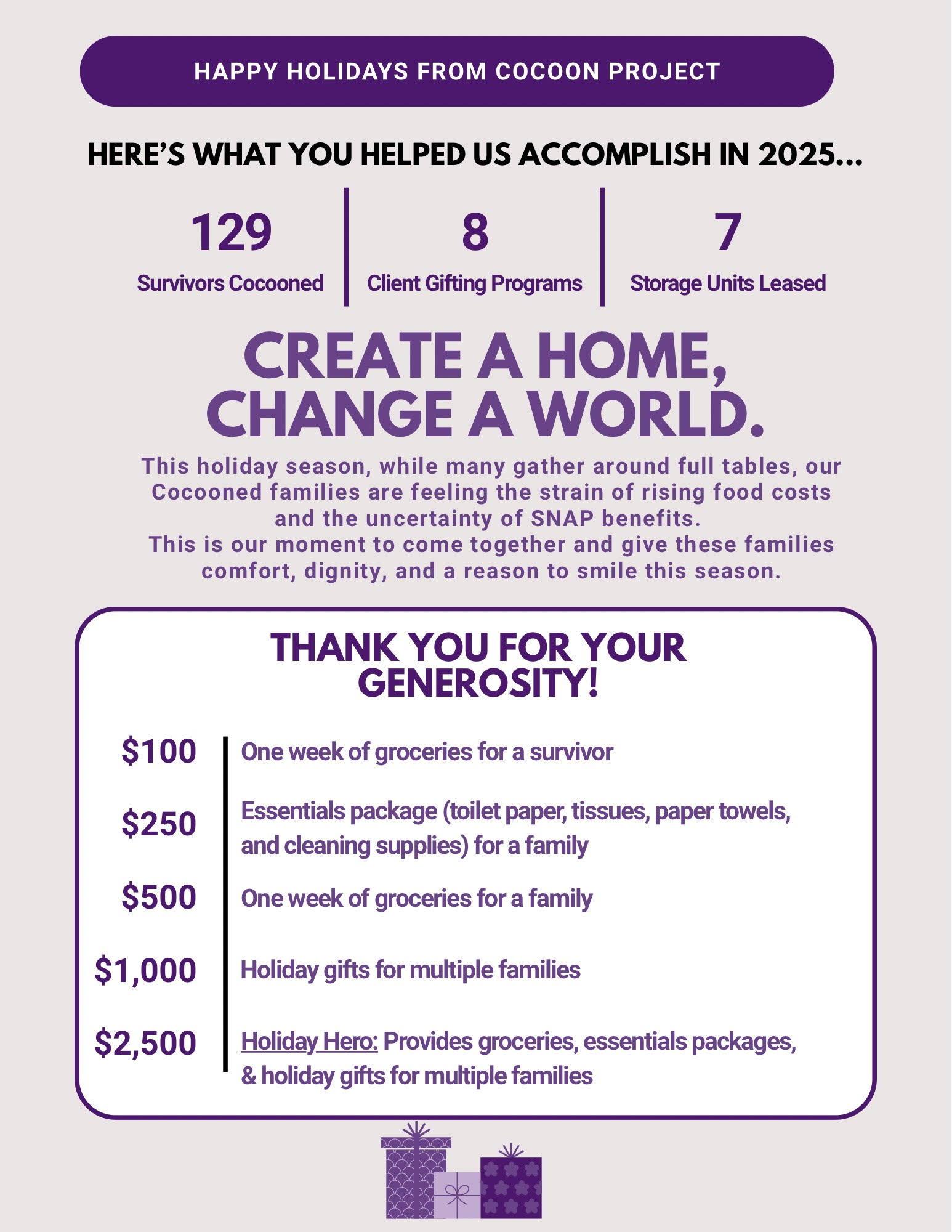 When you choose this option, we will send a tribute certificate or e-Card acknowledging your gift.